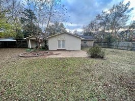 roof. The backyard features a large patio slab, creating the perfect space for delightful cookouts with friends and