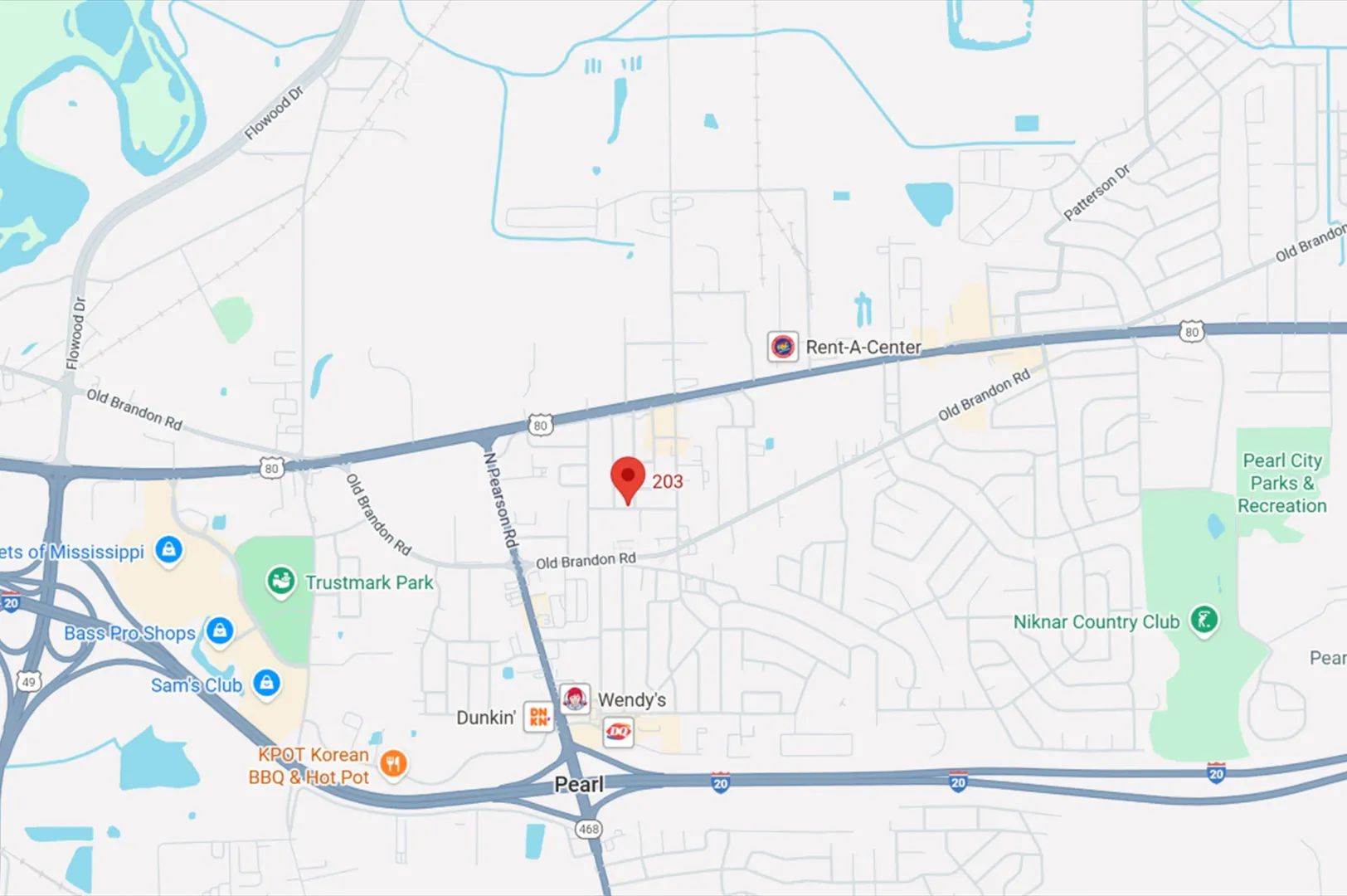 Directions from I-20 in Pearl, MS: Take exit 48 for Pearson Road. Turn onto Pearson Road and travel 0.8 miles. Turn right onto Old Brandon Road and travel .2 miles. Turn left onto Valentour Road and travel 0.1 miles. Turn right onto Parkway Drive and travel 0.1 miles. Turn left onto Pearl Drive. The home will be the first house on the left.
