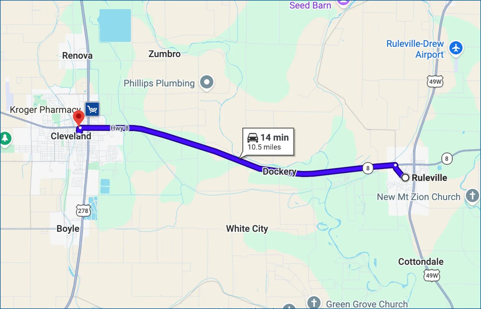 Directions from Ruleville, MS: Head toward N Ruby Ave for 0.5 miles. Turn left onto MS-8 W/Quiver St for 9.6 miles. Turn left onto Commerce Ave for 0.2 miles. In 200 feet, turn right onto North St, and in 0.2 miles, turn right onto Kamien Way. The destination will be on the left.