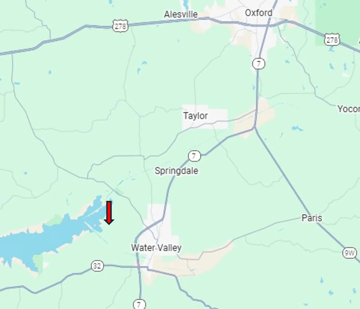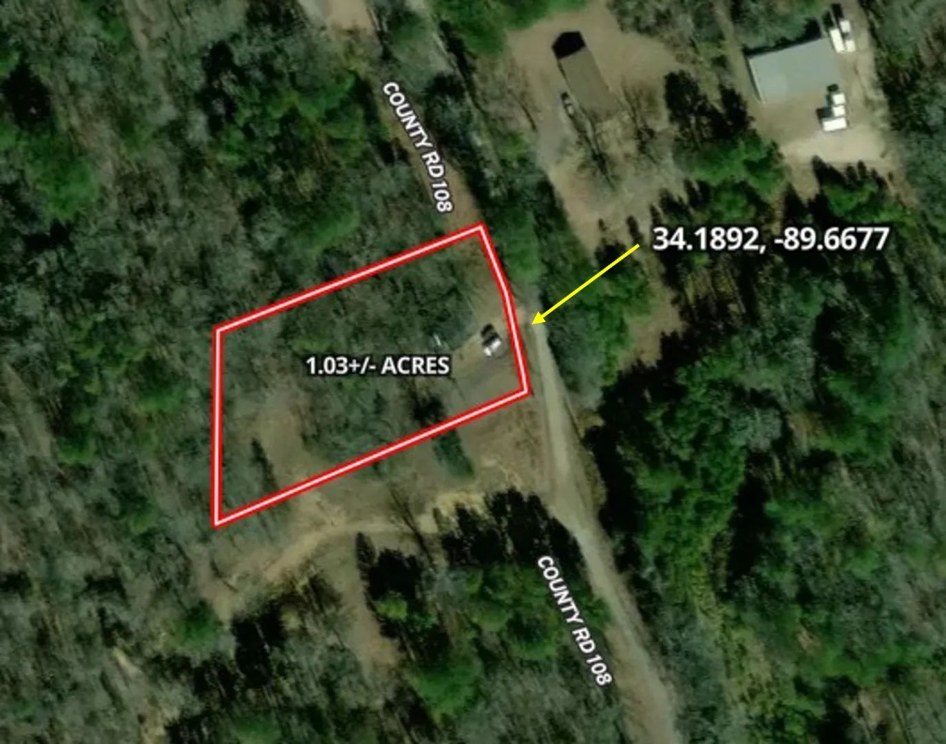 Directions from Hwy 7 in Water Valley, MS: Travel west on MS-7 for 1.3 miles. Turn left onto CR 107 for 0.7 miles. Turn right onto CR 108/Goodwin Rd for 0.4 miles and the property will be on your left.