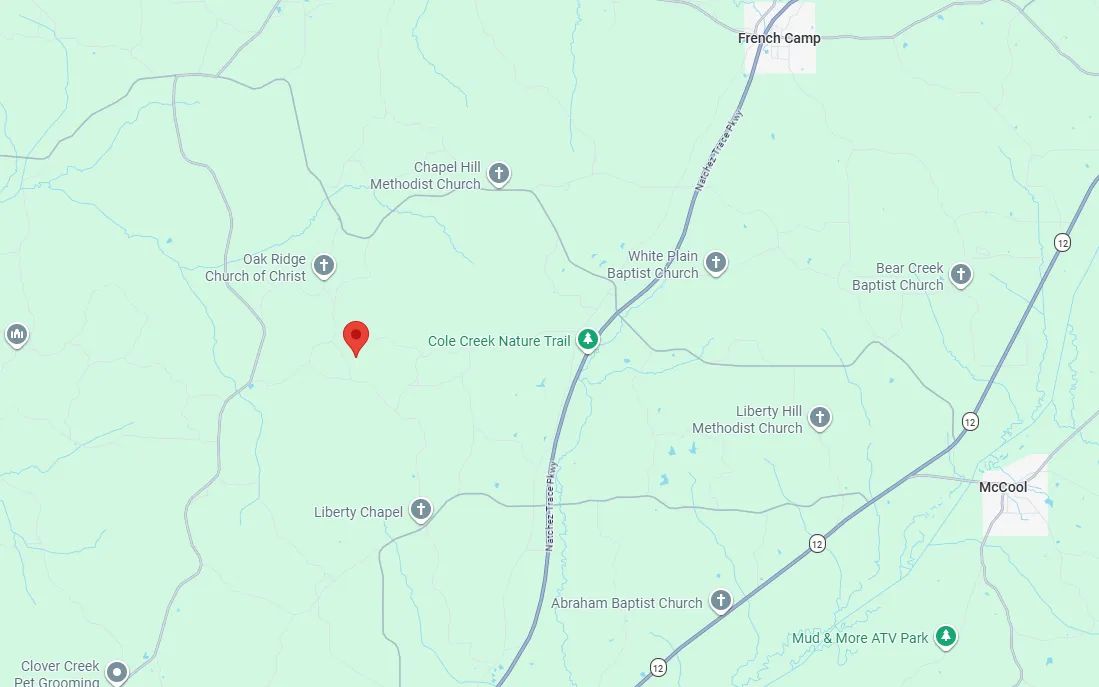 Directions from MS-411 in McCool, MS: Head toward MS-12 for 0.7mi, turn left onto MS-12 and in 0.6mi, turn right onto Rock Port Road. In 6.8mi, turn right onto County Road 2253 and follow for 2.8mi. Take a slight right onto County Road 2257 for 0.2mi and the destination will be on your right.