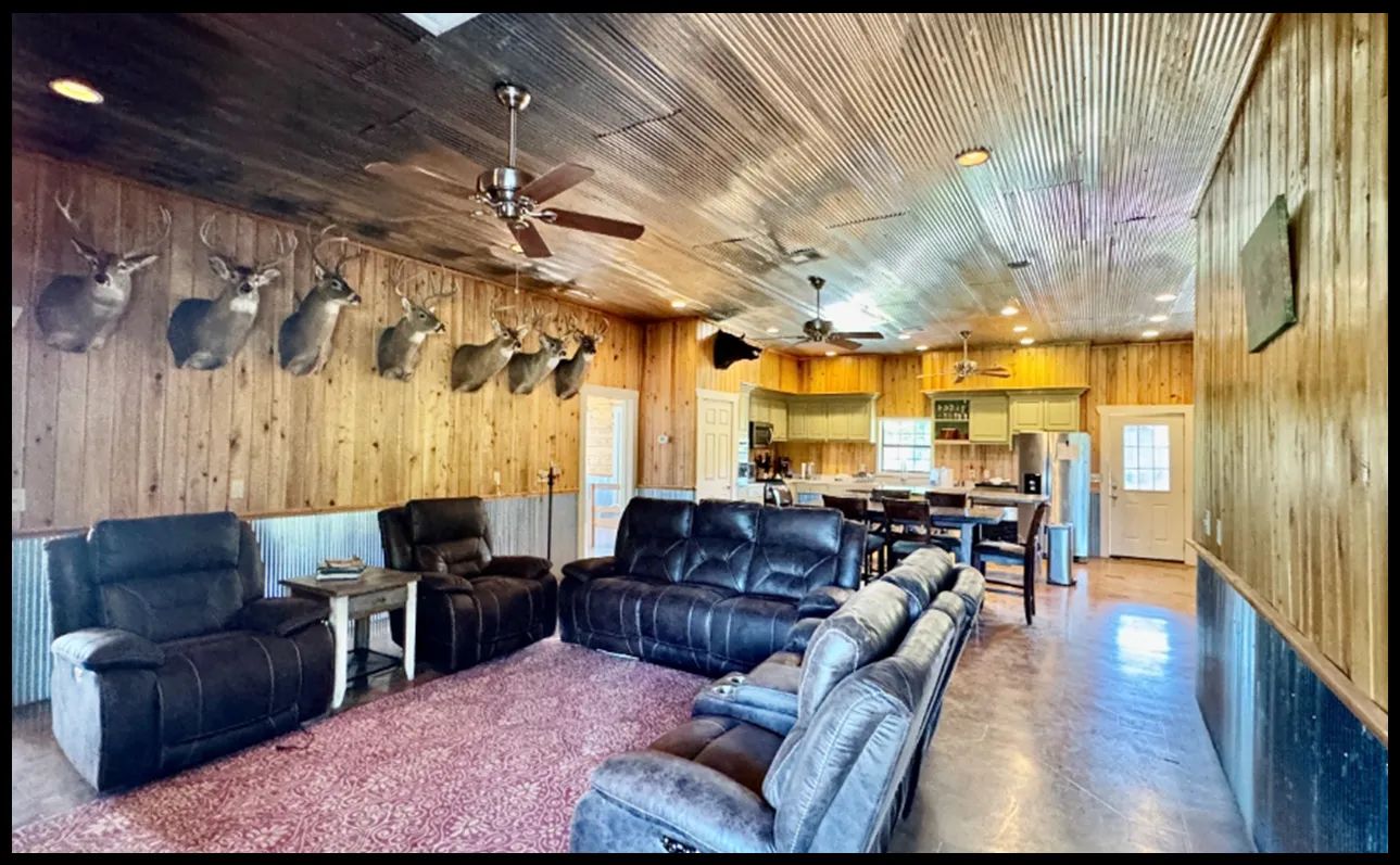 At the heart of Meadowbrook lies a beautifully crafted seven-bedroom, seven-bath lodge built in 2010 — designed to bring family, friends, and the outdoors together under one roof. The spacious great room features a wood-burning fireplace and inviting seating for relaxing after a morning hunt. A fully equipped kitchen and large dining area make entertaining effortless, while the mudroom — complete with lockers, washer, and dryer — adds function to comfort. Each equity share includes a private bedroom and bath, creating the perfect retreat for members and their guests. The lodge embodies the spirit of Meadowbrook — a place where stories are told, meals are shared, and memories are made season after season.